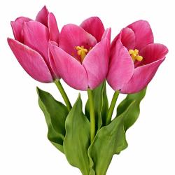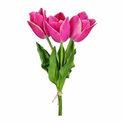 Bukiet sztucznych tulipanów różowych – 3 sztuki to elegancka dekoracja o naturalnym wyglądzie i intensywnym kolorze. Starannie wykonane kwiaty oraz liście wiernie odwzorowują prawdziwe tulipany, bez potrzeby pielęgnacji.