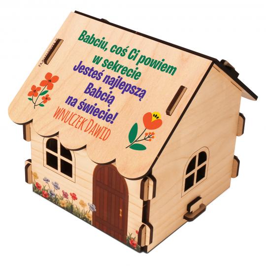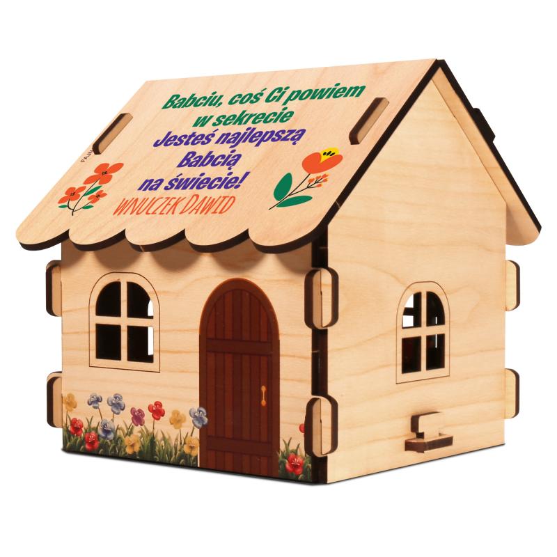 Prezent w postaci domku na słodycze to coś więcej niż tylko praktyczny upominek. To także element dekoracyjny, który wzbogaci każde wnętrze. Dzięki swojemu designowi, domek idealnie wpisuje się w nowoczesne oraz tradycyjne aranżacje. Jego klasyczna forma i naturalny kolor drewna sprawiają, że doskonale komponuje się zarówno z minimalistycznymi, jak i rustykalnymi przestrzeniami. Domek na słodycze może być postawiony na stoliku, komodzie lub półce, stanowiąc ciekawy akcent w domu Dziadka i Babci. W połączeniu z delikatnymi słodyczami, takimi jak czekoladki czy cukierki, staje się wyjątkową ozdobą każdego dnia.