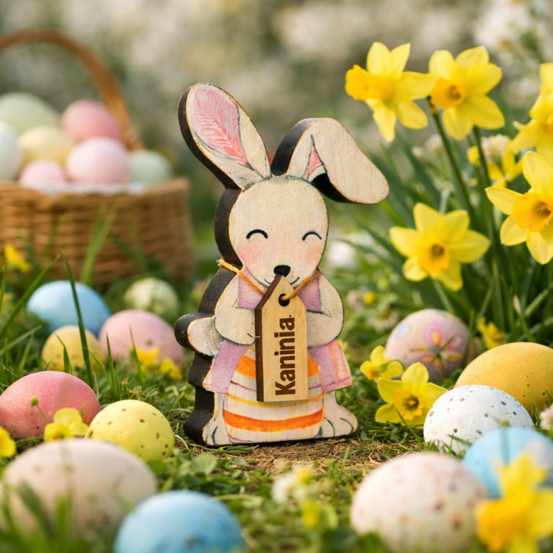 Spersonalizowany drewniany zajączek na wielkanoc. Dziewczynka