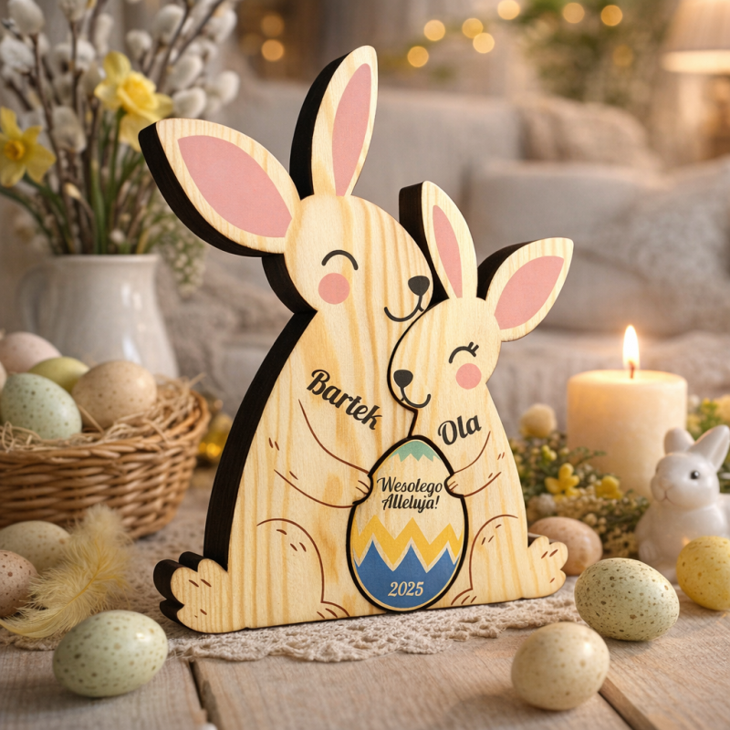 Podaruj bliskim coś wyjątkowego i stwórz świąteczny klimat dzięki naszym drewnianym zającom z imionami. To dekoracja, która sprawi, że każda Wielkanoc będzie jeszcze piękniejsza!