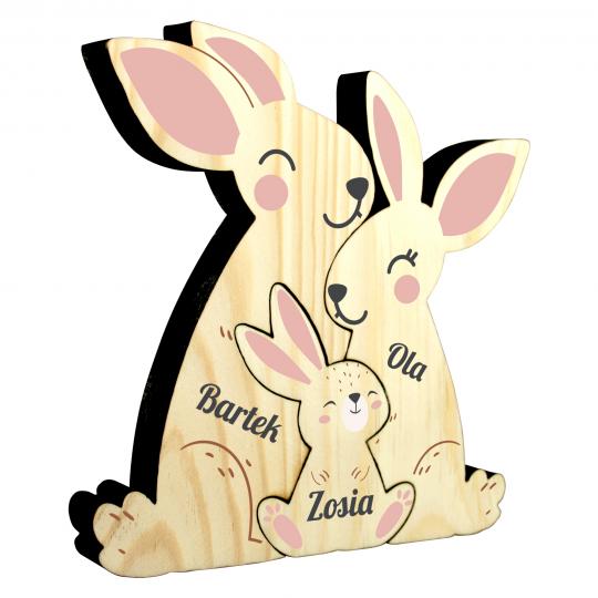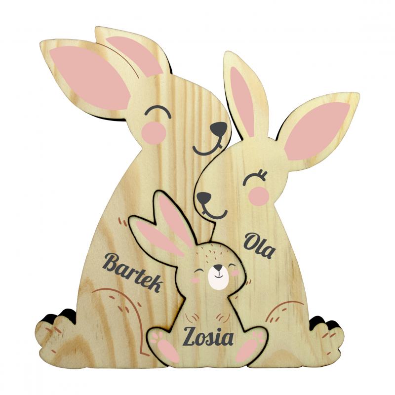 Drewniane zające z imionami personalizowane dekoracje Wielkanoc