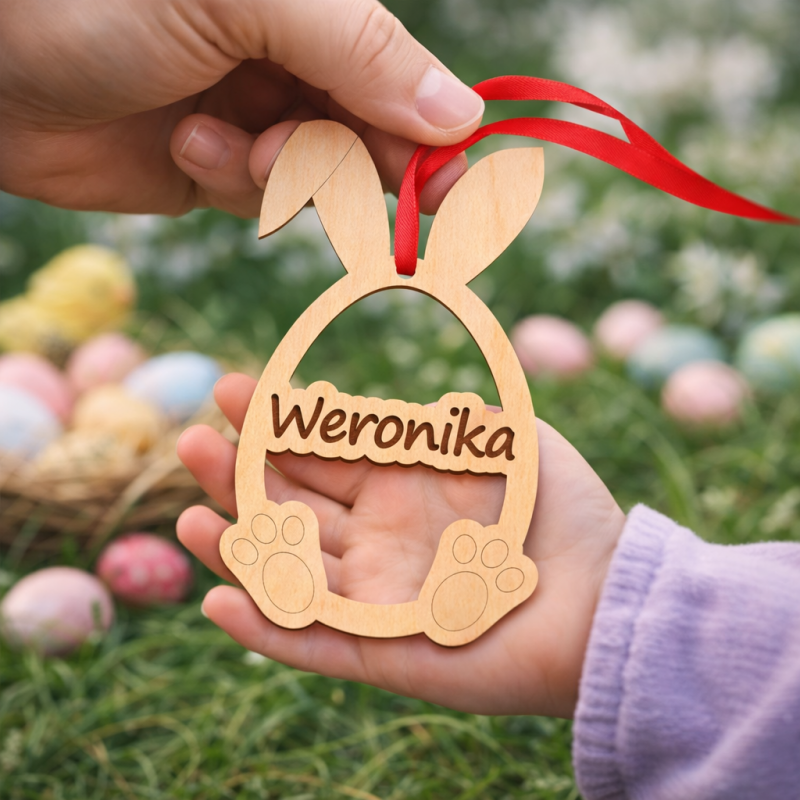 Grawerowany drewniany zajączek na Wielkanoc z imieniem