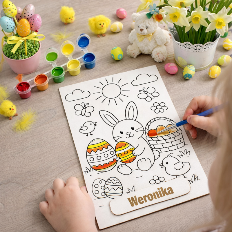 Wielkanocny dyplom kolorowanka z imieniem to kreatywny upominek dla dziecka, który łączy zabawę z piękną pamiątką świąteczną.