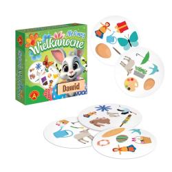 Kolorowe ilustracje z motywami wielkanocnymi sprawiają, że gra doskonale sprawdzi się jako zabawa dla dzieci podczas świąt, a także jako drobny prezent wielkanocny.
