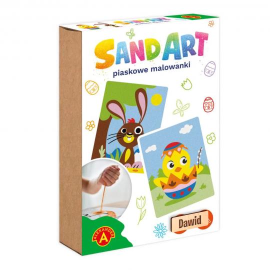 Piaskowe Malowanki Wielkanoc Kurczaczek i Zajączek to kreatywny zestaw plastyczny dla dzieci, który pozwala stworzyć dwa kolorowe wielkanocne obrazki z wykorzystaniem barwnego piasku.