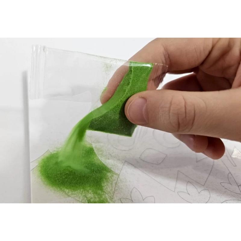 Zestaw zawiera aż 22 woreczki z kolorowym piaskiem, co daje wiele możliwości tworzenia i eksperymentowania z kolorami.