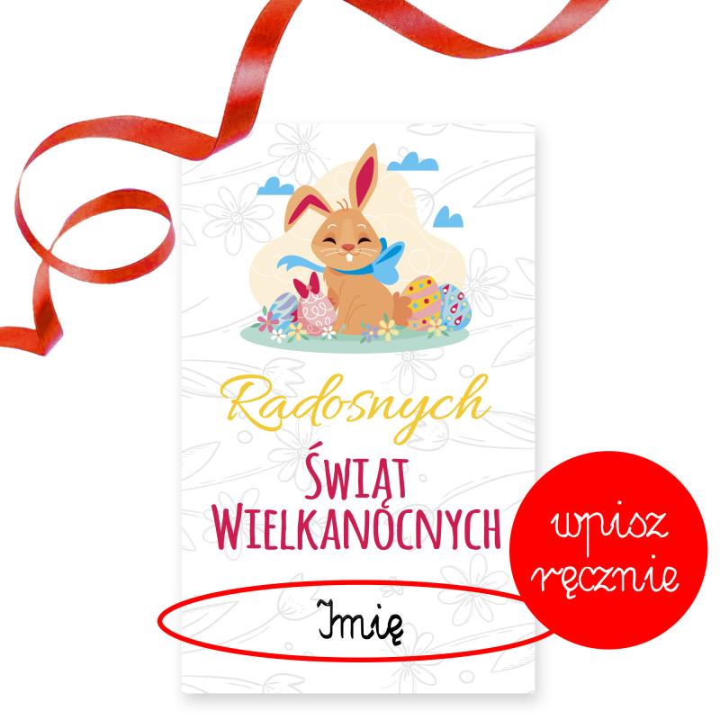 Do zestawu dołączony jest bilecik wielkanocny do samodzielnego podpisania, który można przewiązać wstążeczką i dodać osobistą dedykację.