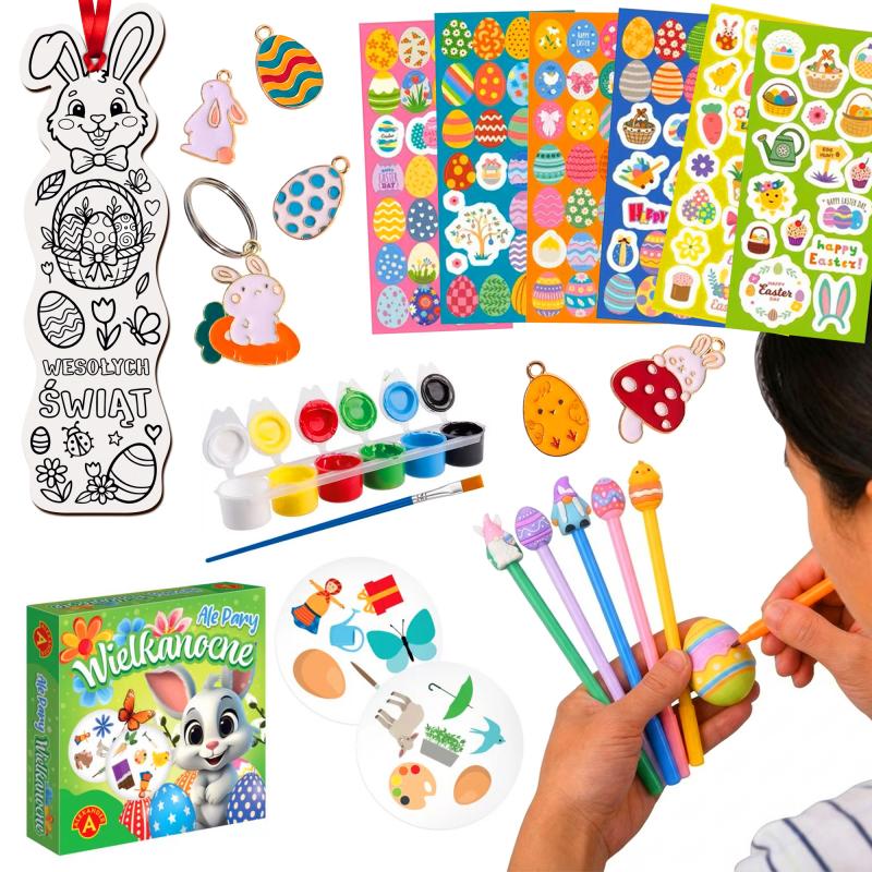 Zestaw stanowi kompletny prezent wielkanocny dla dziecka, który zapewnia radość, kreatywną zabawę i świąteczne emocje.