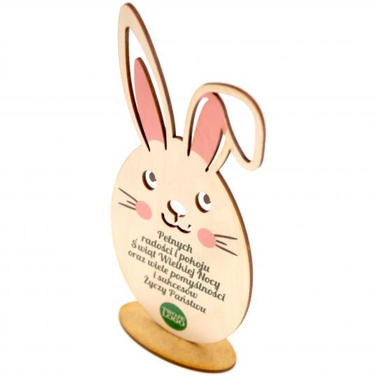 Dekoracyjny kształt zajączka oraz starannie wykonany nadruk sprawiają, że upominek prezentuje się wyjątkowo i przyciąga uwagę.