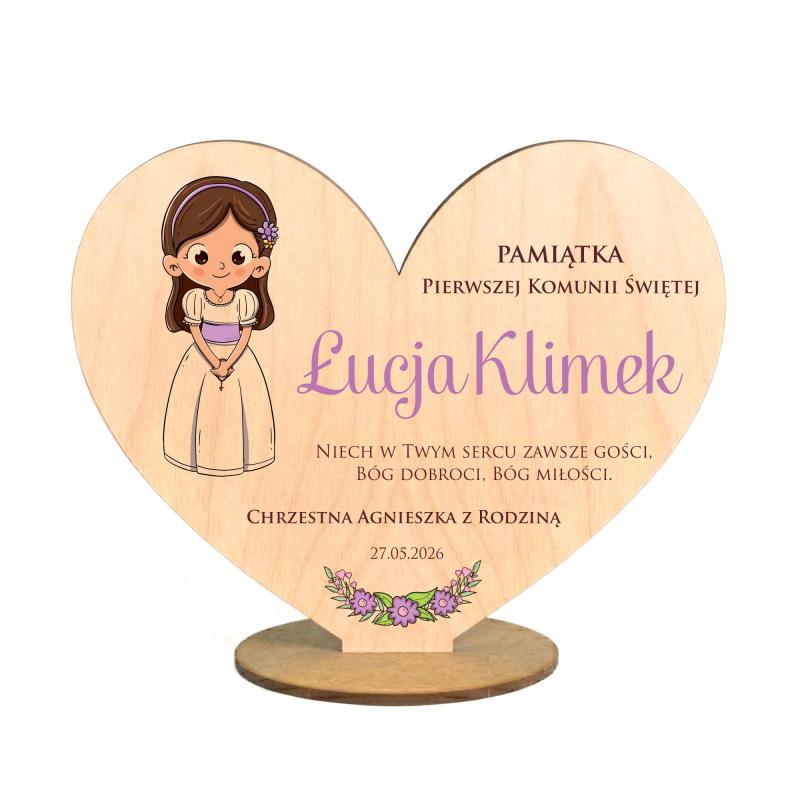 Ta statuetka w kształcie serca z wizerunkiem dziewczynki to doskonała pamiątka dla każdej dziewczynki, która przystąpiła do swojej pierwszej Komunii Świętej i będzie stanowiła wspaniałą dekorację w każdym domu.