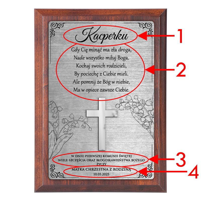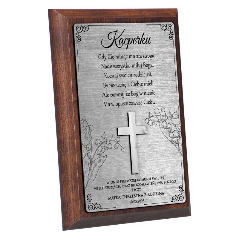 Upamiętnij ważny moment w życiu dziecka, ofiarowując mu elegancką pamiątkę. To piękna drewniana tablica z grawerem, która może zawierać dedykację, np. imię dziecka oraz datę Pierwszej Komunii Świętej. Takie upominki są pełne emocji i głębokiego duchowego przesłania.