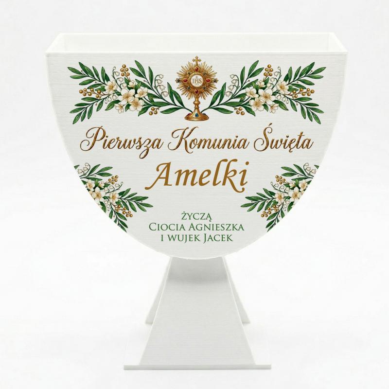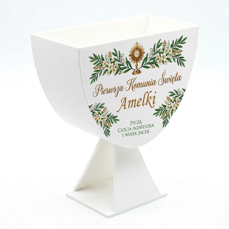 Flowerbox Komunia Święta personalizowany kielich prezent podpis
