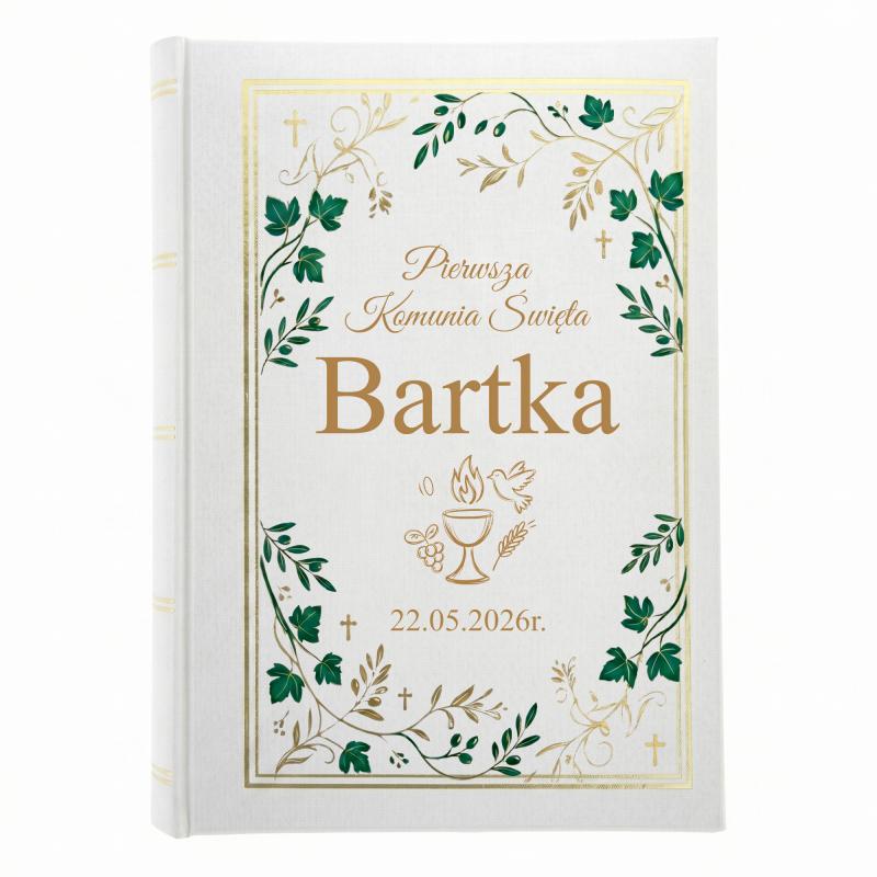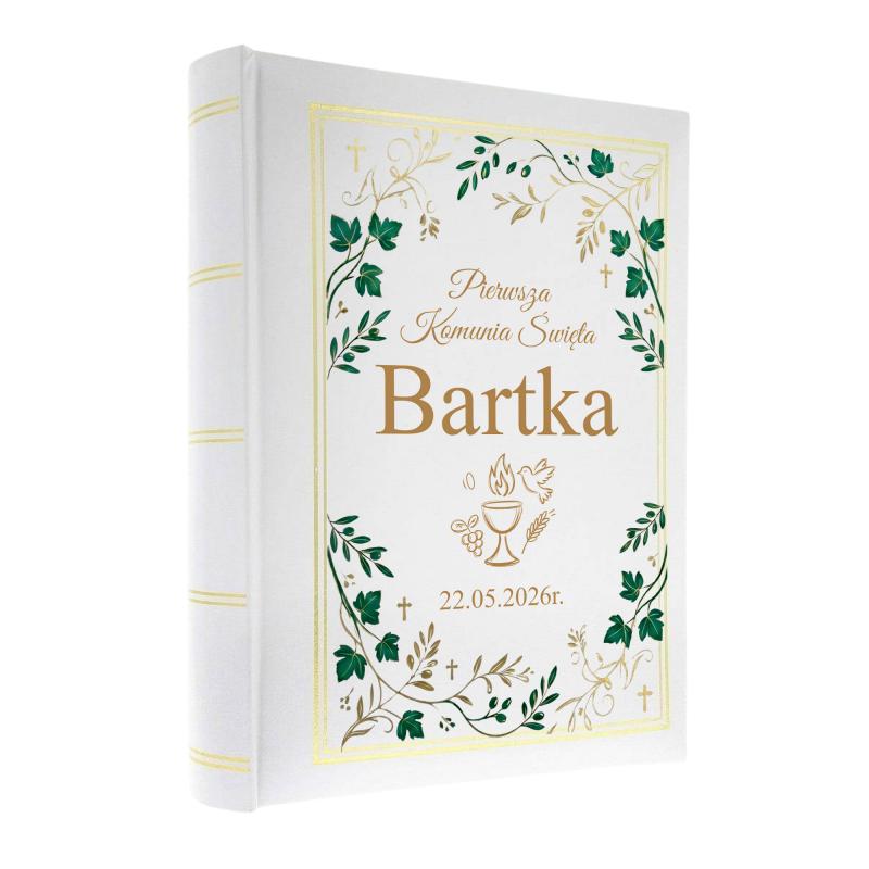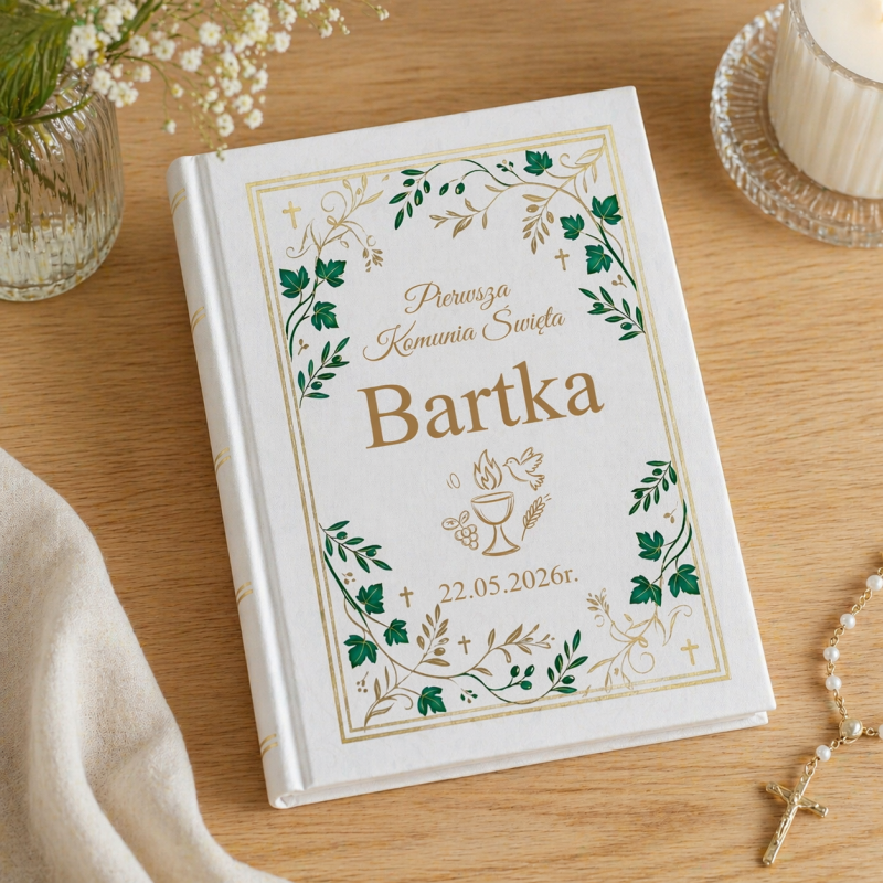 Elegancki album na zdjęcia to wyjątkowa pamiątka z Pierwszej Komunii Świętej. Personalizowana okładka z imieniem i datą uroczystości nadaje mu indywidualny i uroczysty charakter.
