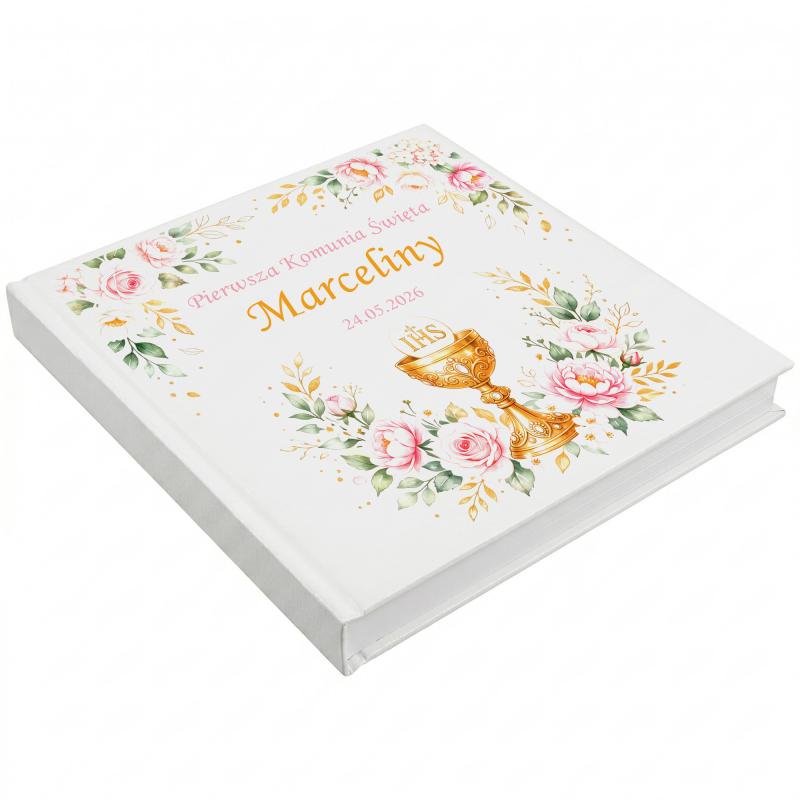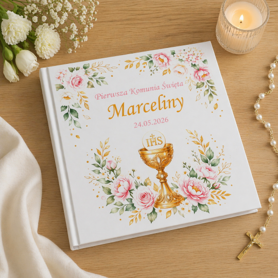 Elegancki album komunijny z personalizowaną okładką to wyjątkowy sposób na zachowanie najpiękniejszych wspomnień. Imię i data uroczystości nadają mu indywidualny, pamiątkowy charakter.