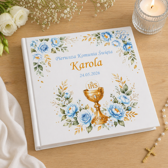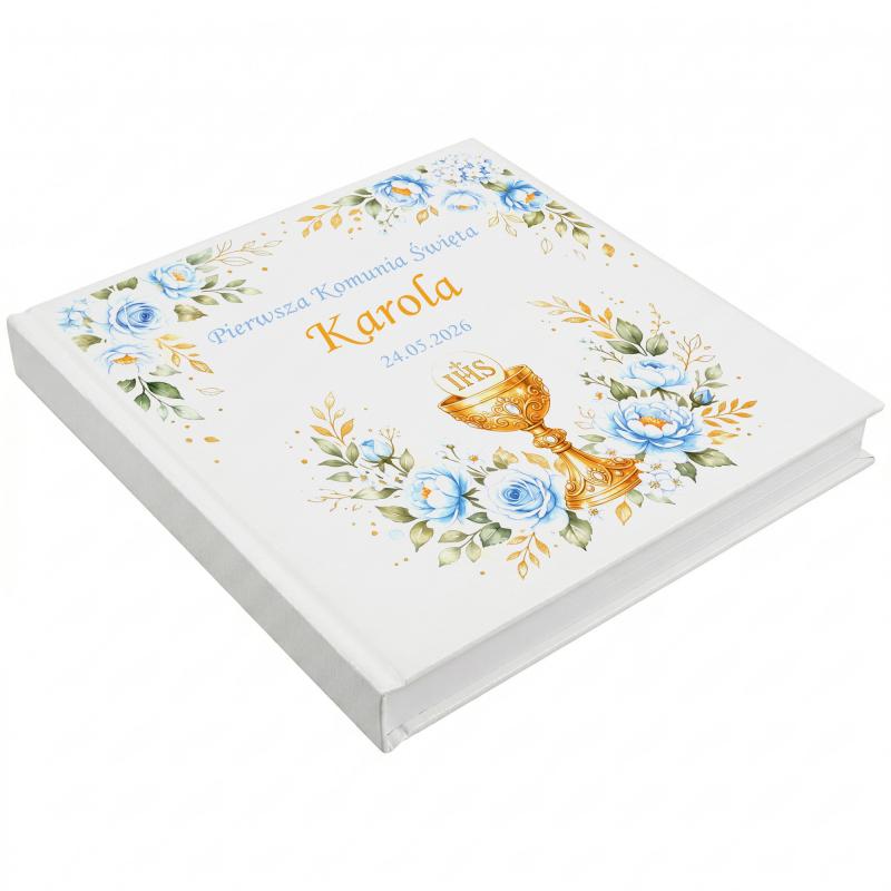 Elegancki album komunijny z personalizowaną okładką to wyjątkowy sposób na zachowanie najpiękniejszych wspomnień. Imię i data uroczystości nadają mu indywidualny, pamiątkowy charakter.