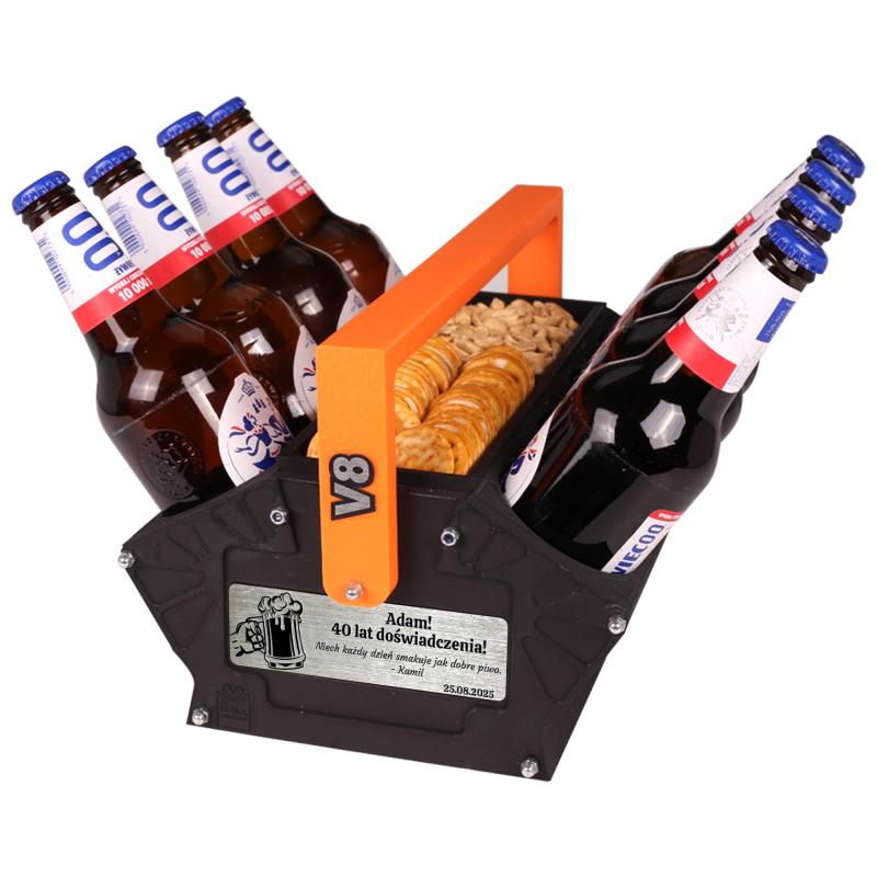 Skrzynka V8 na piwo z przekąskami – prezent na Urodziny