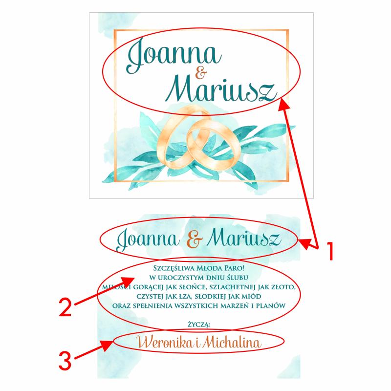 To pole jest przeznaczone na wiersz, cytat lub życzenia. Pamiętaj, aby tekst nie był za długi, ponieważ zmieni się układ tekstu, a to wpłynie na jego rozmiar. Tekst, który widzisz na zdjęciu, jest standardowy. Jeśli chcesz, aby taki pozostał oznacz w tym miejscu "Tekst bez zmian". Jeżeli chcesz inny, wpisz go w tym miejscu. Jeżeli chcesz zostawić to miejsce puste, oznacz w tym miejscu "Nie chcę personalizować tego pola (brak tekstu)".