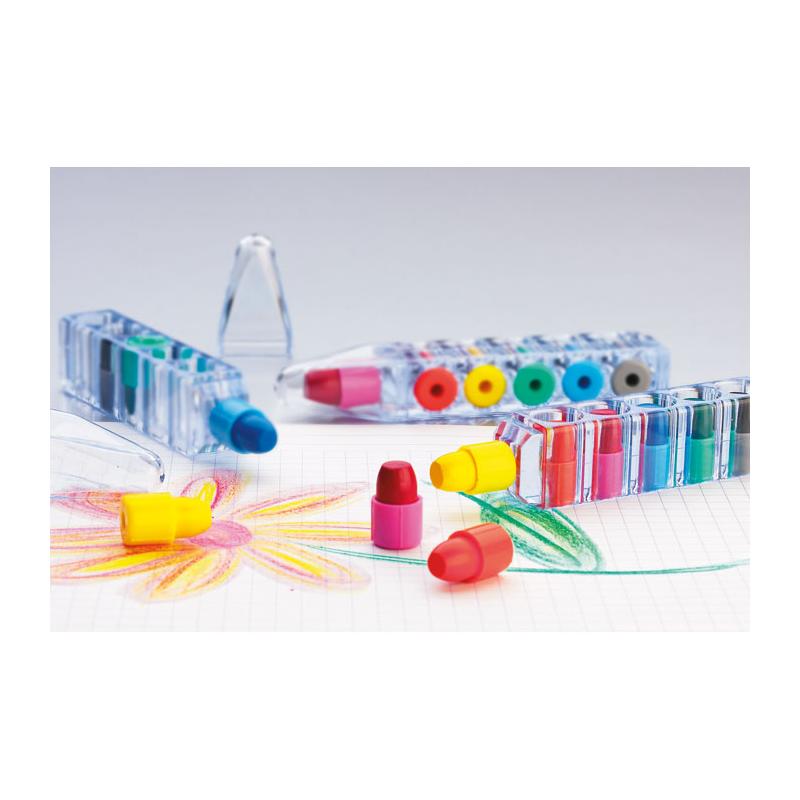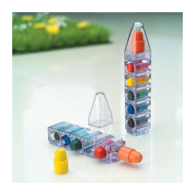 - Poręczne i wygodne – kredki w wymiennym aplikatorze, łatwe do trzymania.