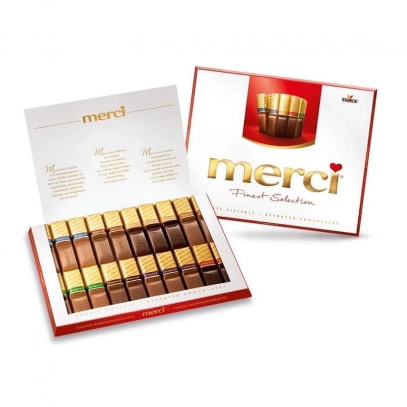 Czekoladka Merci 1 szt smak losowy do podziękowań i prezentów to elegancki i uniwersalny dodatek, który doskonale uzupełni każdy upominek. Klasyczna czekoladka w różnych wariantach smakowych zachwyca delikatnym smakiem i estetycznym wyglądem.