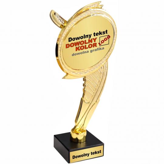 Na złotej tabliczce laminatu o grubości 1mm można umieścić dowolną personalizację, np. nazwę wydarzenia, datę, imię zwycięzcy, logo czy grafikę.