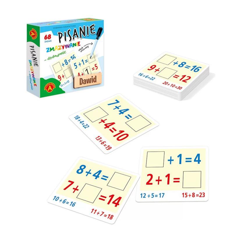 Pisanie Zmazywanie – Odejmowanie to edukacyjna gra stworzona dla dzieci, które uczą się podstaw matematyki. Idealna jako prezent, pomoc dydaktyczna w domu lub ciekawe uzupełnienie nauki w szkole. Dzięki kompaktowemu formatowi można zabrać ją wszędzie – na wycieczkę, wakacje czy do plecaka szkolnego.