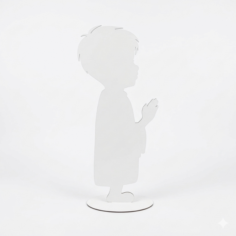 Dzięki prostej i eleganckiej formie figurka pasuje do różnych stylów przyjęć – zarówno klasycznych, jak i nowoczesnych aranżacji komunijnych.