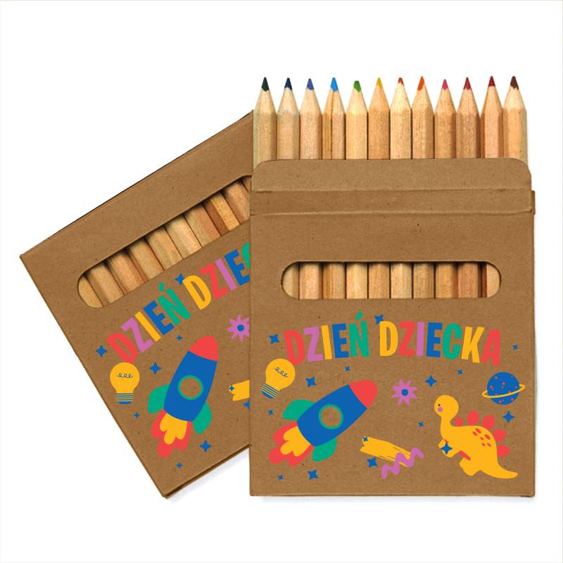 Kolorowe kredki w ekologicznym pudełku z napisem Dzień Dziecka to uroczy prezent dla przedszkolaków i uczniów. Praktyczny, kreatywny i ekologiczny upominek.