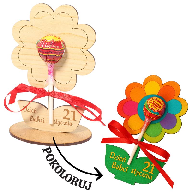 Statuetka kolorowanka na lizaka na Dzień Babci grawerowany kwiatek dla Babci
