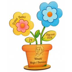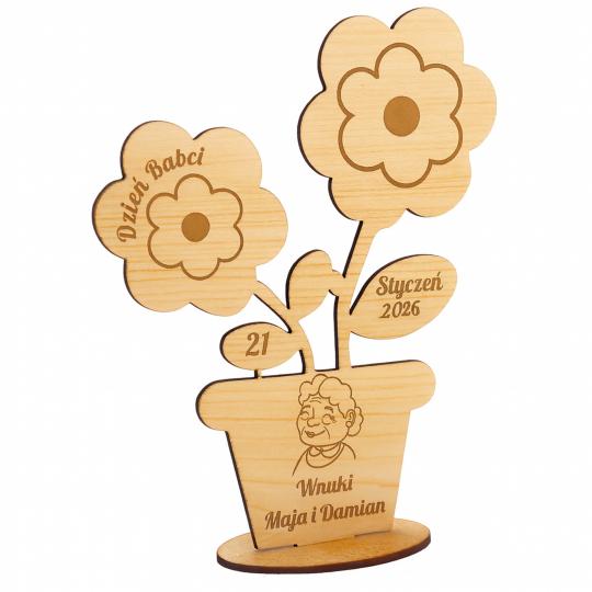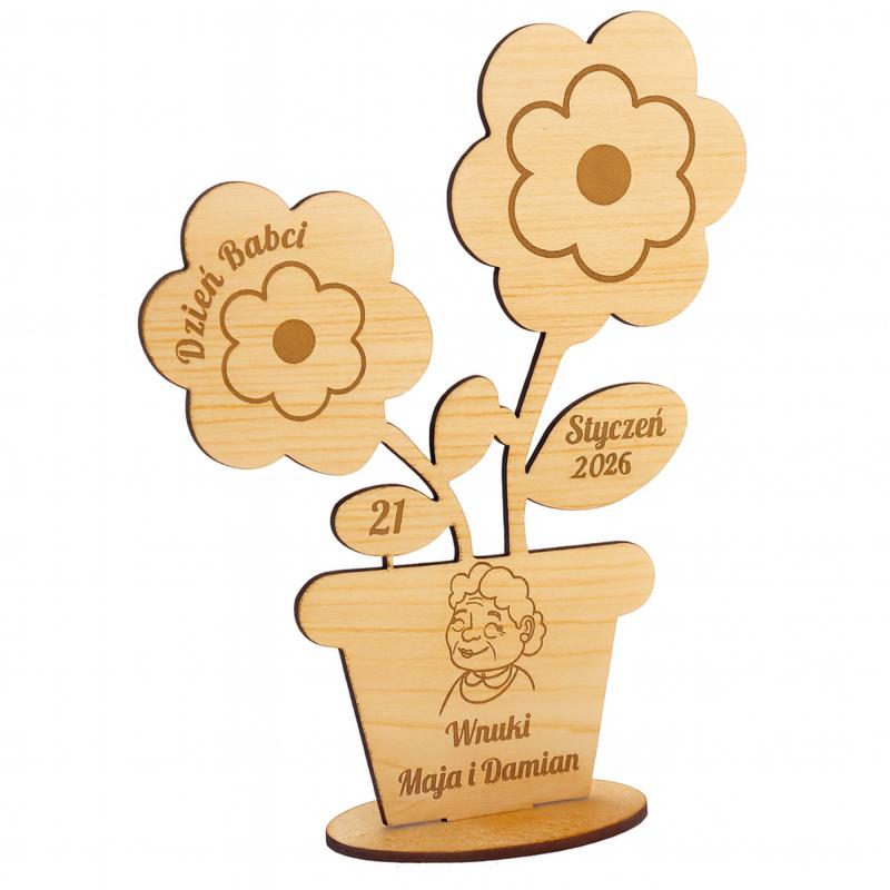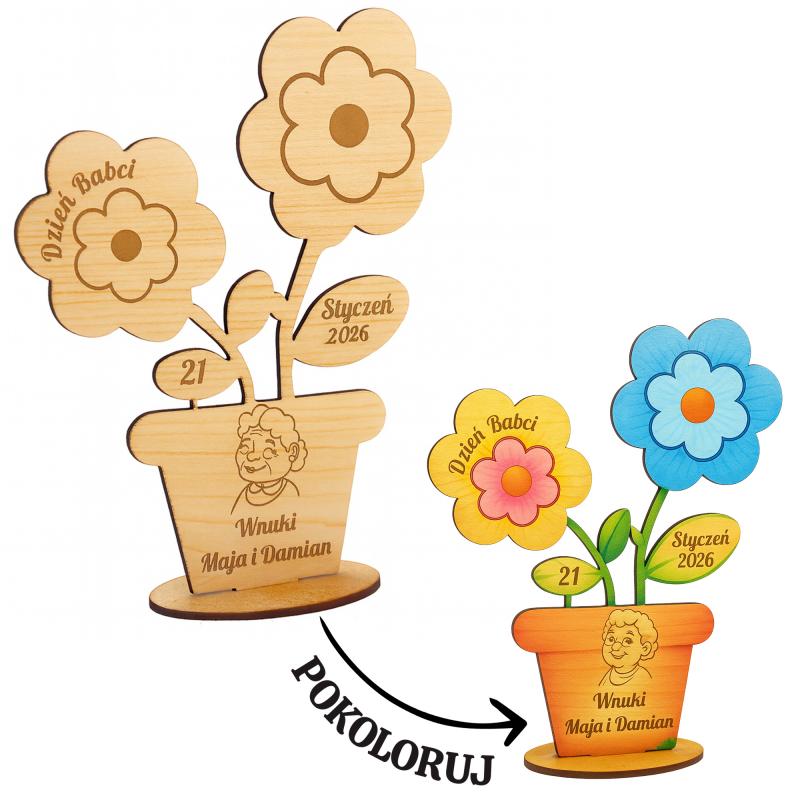 Drewniana statuetka dla Babci w formie kwiatka do kolorowania to piękna, sentymentalna pamiątka, która łączy kreatywną zabawę z osobistym charakterem. Grawerowane detale – data, napis Dzień Babci oraz imiona wnuków – sprawiają, że każdy prezent staje się jedyny w swoim rodzaju.