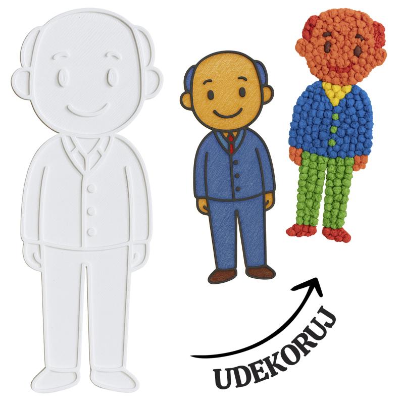 Kreatywna figurka do kolorowania w kształcie dziadka to wspaniała zabawa plastyczna i wyjątkowy pomysł na prezent z okazji Dnia Dziadka. Wypukłe kontury ułatwiają dekorowanie, dzięki czemu figurka doskonale sprawdzi się zarówno w domu, jak i podczas zajęć w przedszkolu, szkole czy żłobku.