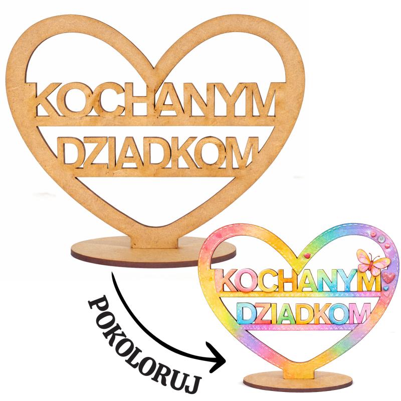 Kochanym Dziadkom serce drewniane do kolorowania prezent