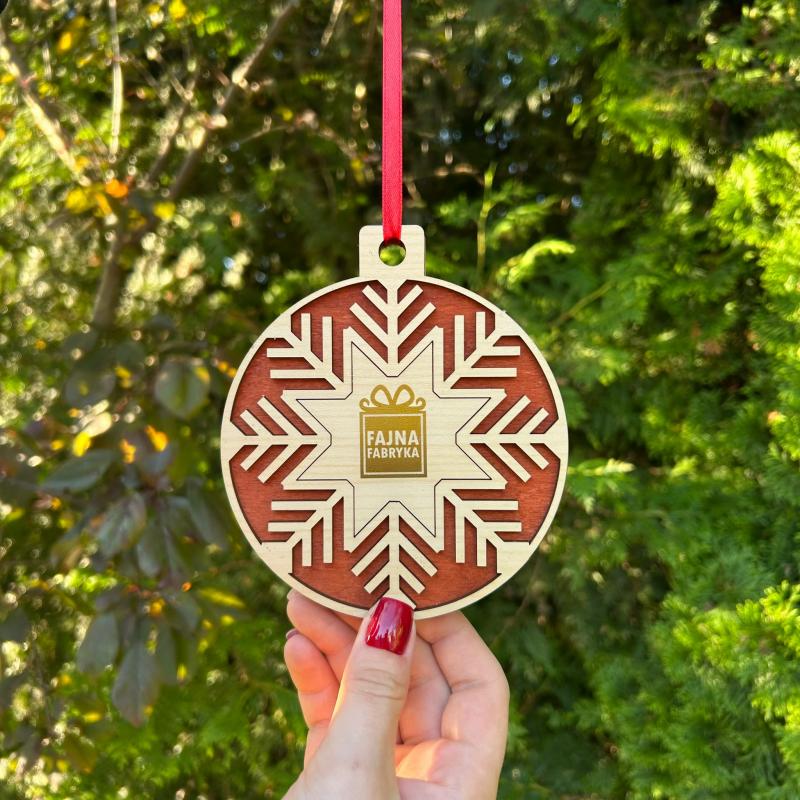 Personalizowana drewniana bombka śnieżynka z logo firmy na Święta