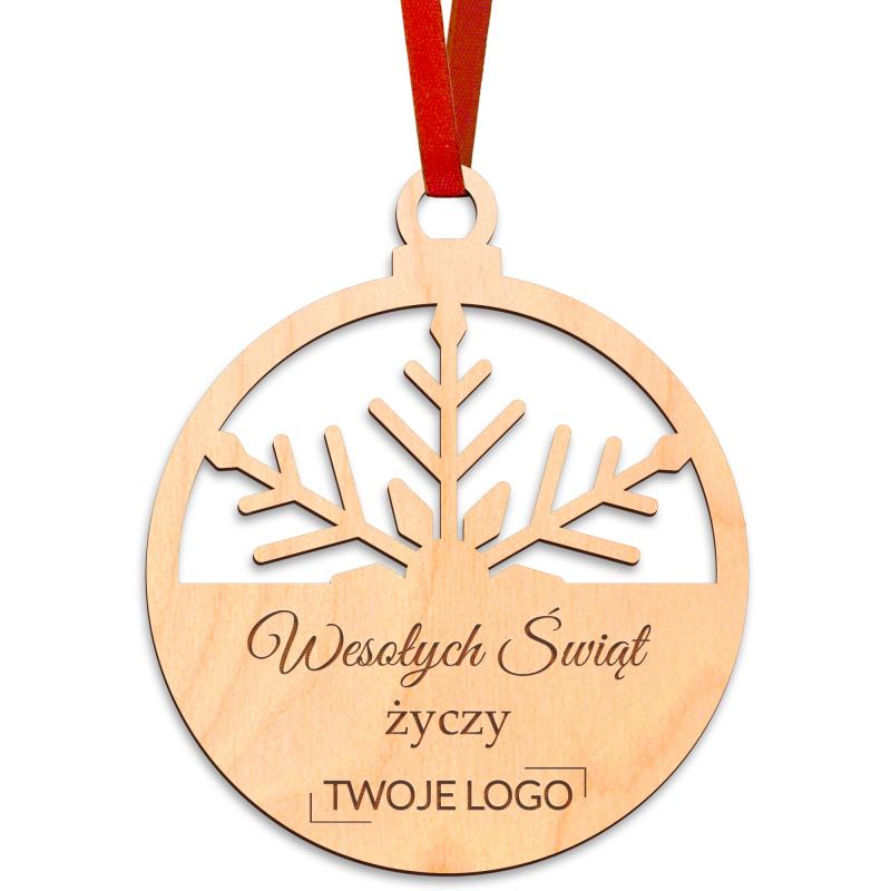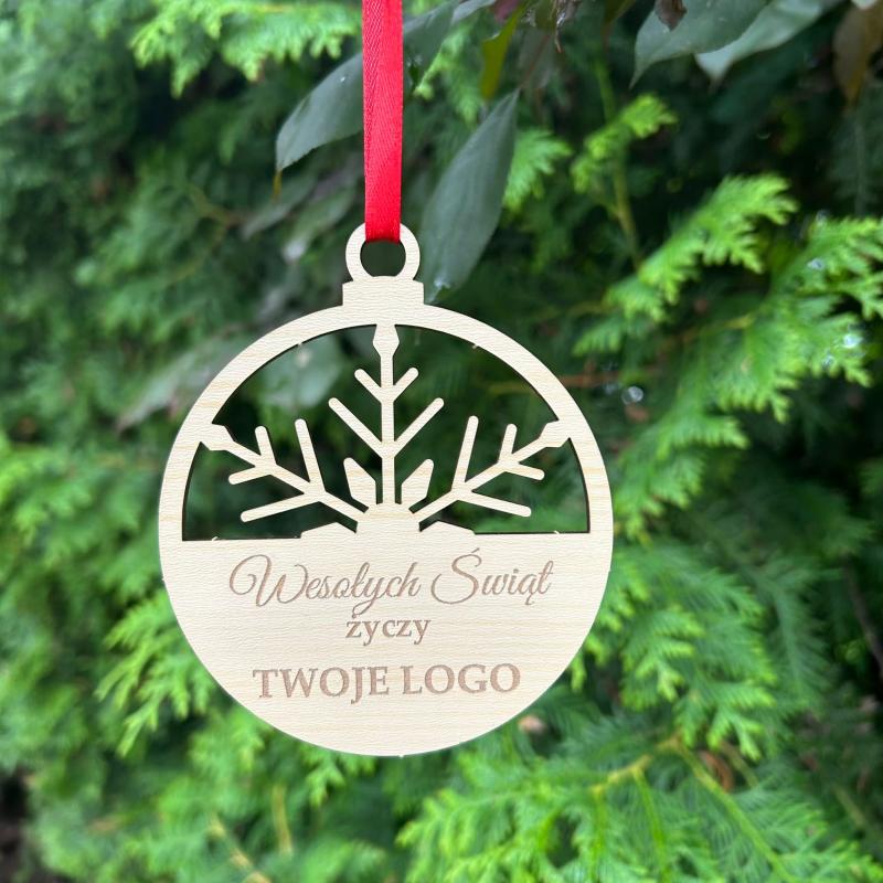Ażurowa bombka świąteczna śnieżka z logo firmy na Boże Narodzenie
