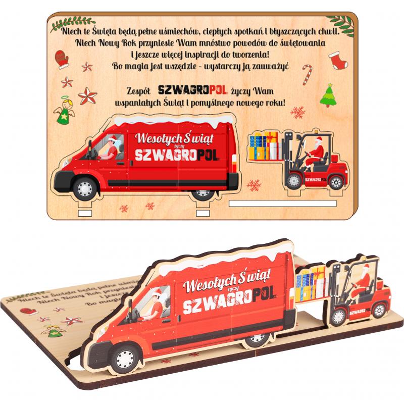 Kartka świąteczna upominek dla kurierskiej transportowej wózek widłowy i ciężarówka