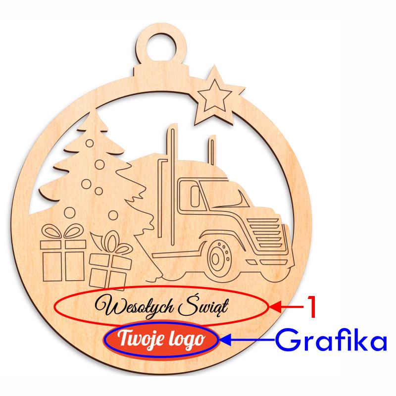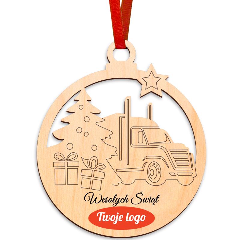 Bombka drewniana z logo firmy ciężarówka kierowcy prezent choinka