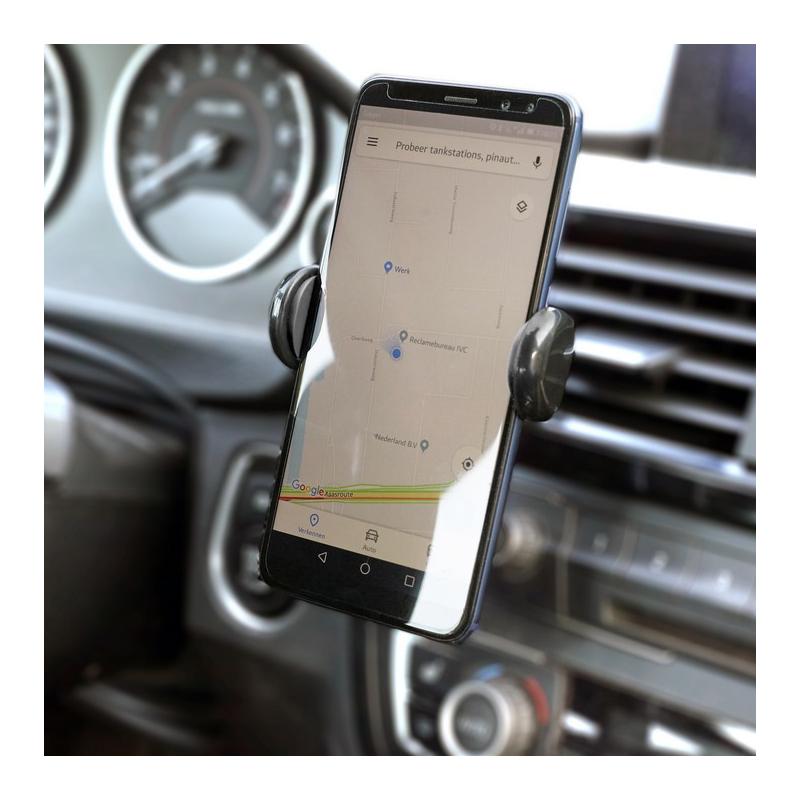 Uchwyt posiada mocowanie do kratki wentylacyjnej i pełny obrót 360°, co zapewnia wygodne ustawienie telefonu w dowolnej pozycji. Stabilna konstrukcja utrzymuje urządzenie bez ryzyka wypadnięcia, nawet podczas jazdy po nierównościach.
