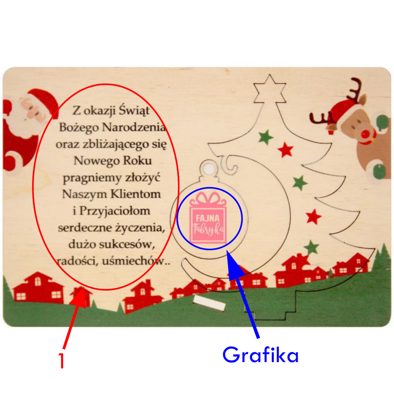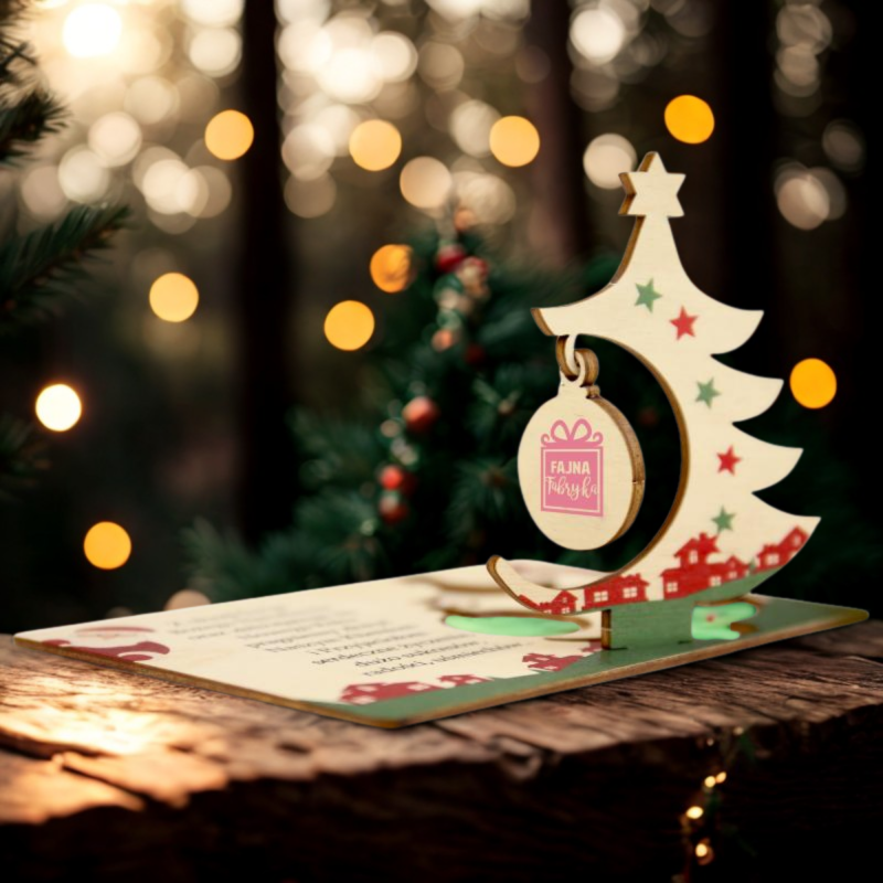 Firmowe kartki świąteczne z drewna MDF to wyjątkowy produkt, który łączy elegancję, jakość oraz możliwość pełnej personalizacji. Dzięki zastosowaniu technologii druku UV, kartki są trwałe i zachowują swój wygląd przez wiele lat. To idealny wybór dla firm, które chcą wyrazić wdzięczność i złożyć świąteczne życzenia w wyjątkowy sposób. Zachęcamy do skorzystania z naszej oferty i zamówienia kartek, które oddadzą pełnię świątecznego klimatu i profesjonalizmu Twojej firmy. Możliwość dokupienia dopasowanej koperty zapewnia eleganckie wręczenie kartki.