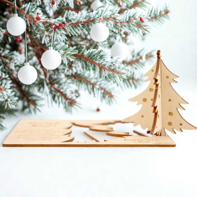 Firmowe kartki świąteczne z drewna MDF to wyjątkowy produkt, który łączy elegancję, jakość oraz możliwość pełnej personalizacji. Dzięki zastosowaniu technologii druku UV, kartki są trwałe i zachowują swój wygląd przez wiele lat. To idealny wybór dla firm, które chcą wyrazić wdzięczność i złożyć świąteczne życzenia w wyjątkowy sposób. Zachęcamy do skorzystania z naszej oferty i zamówienia kartek, które oddadzą pełnię świątecznego klimatu i profesjonalizmu Twojej firmy. Możliwość dokupienia dopasowanej koperty zapewnia eleganckie wręczenie kartki.