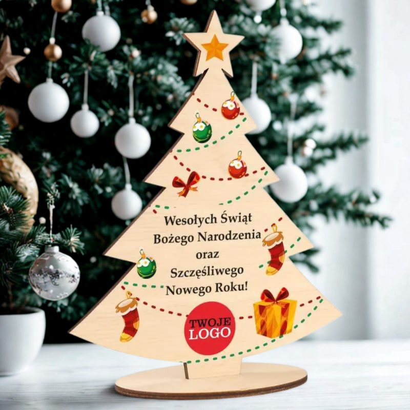 Firmowe kartki świąteczne wykonane z drewna MDF to elegancki sposób na przekazanie życzeń świątecznych, które wyróżnią Twoją firmę. Wysokiej jakości nadruk, wykonany w technologii UV, gwarantuje wyjątkową trwałość i intensywne kolory, które zachowają swój wygląd przez wiele lat. Każda kartka może być w pełni personalizowana – istnieje możliwość umieszczenia Twojego logo oraz dostosowania tekstu życzeń do Twoich potrzeb, co czyni ją idealnym rozwiązaniem dla firm, które chcą podkreślić swój indywidualny charakter.