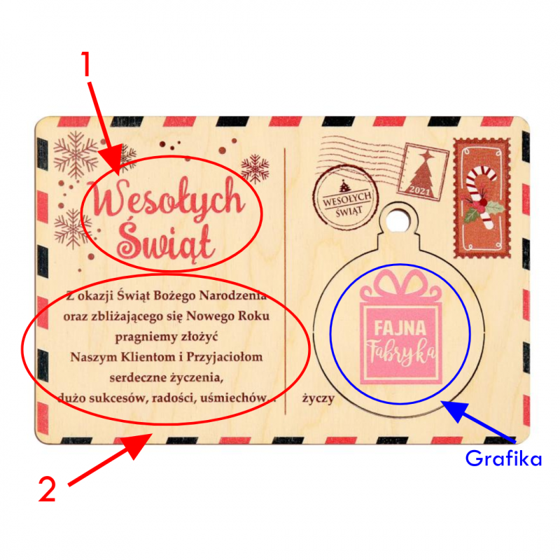 "Grafika" – Możemy dodać Twoje logo w wybranym miejscu kartki. Najlepiej przesłać logo w formacie CDR, EPS, AI, SVG, PDF lub JPG. - Prześlij swoje logo i tekst – Podczas zakupu możesz dodać swoje logo oraz treść życzeń w polach personalizacji, a jeśli wolisz, możesz je wysłać na nasz adres e-mail sklep@fajnafabryka.pl