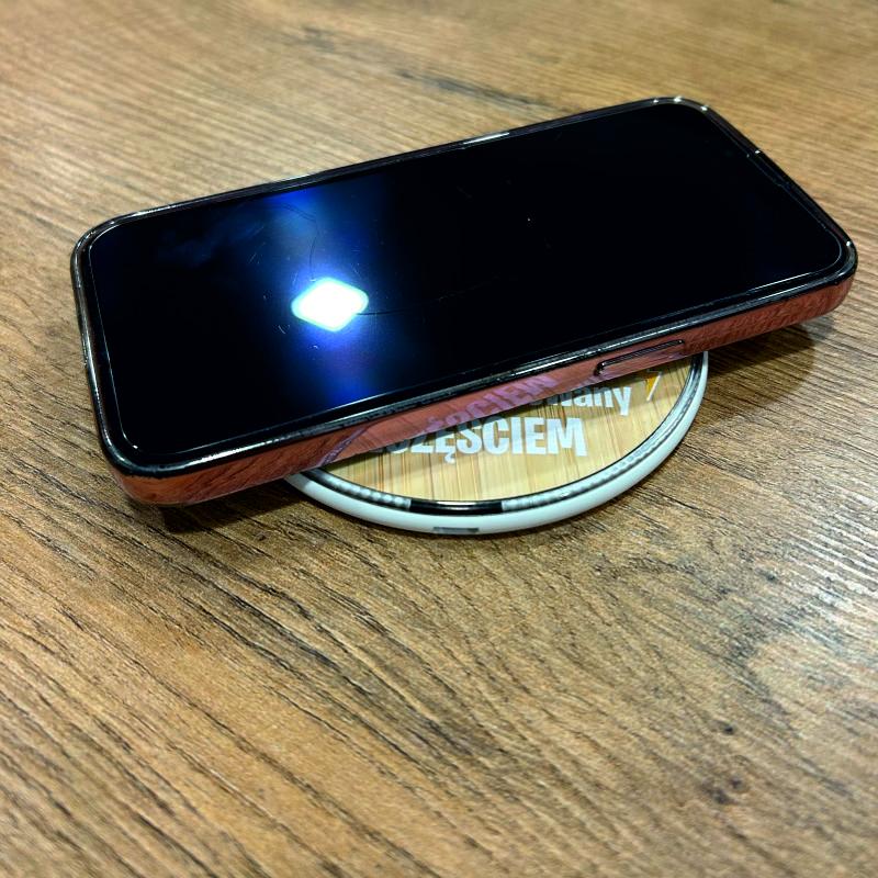 - Bezprzewodowa ładowarka z ABS z imitacją bambusa.