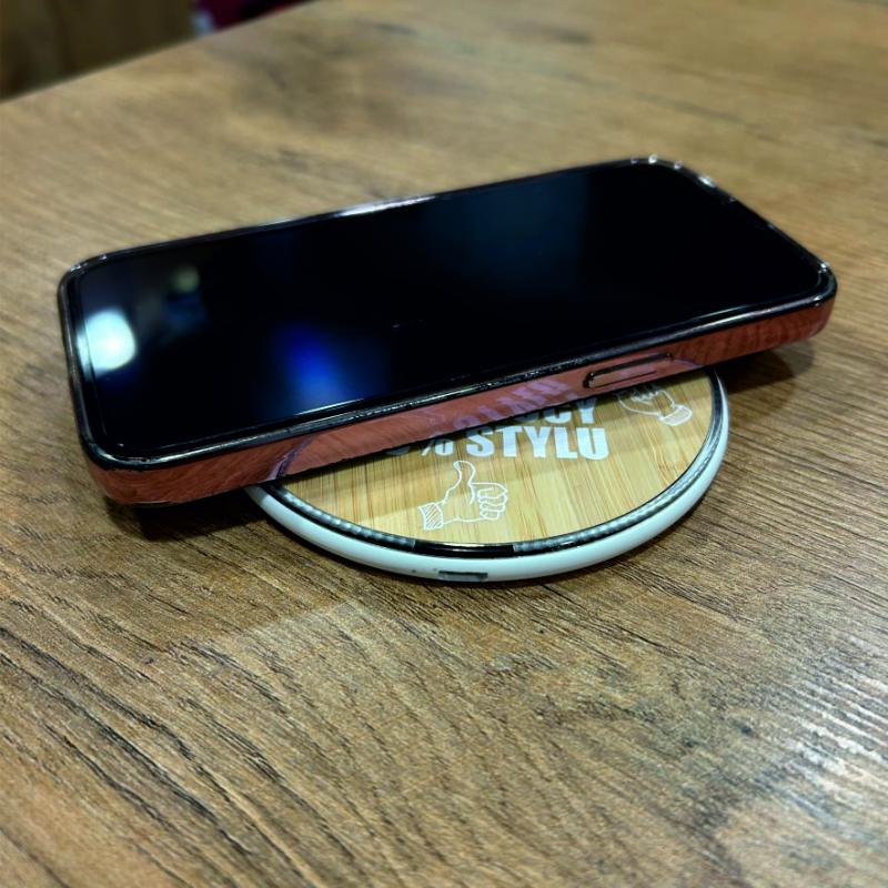 • Bezprzewodowa ładowarka z ABS z imitacją bambusa.