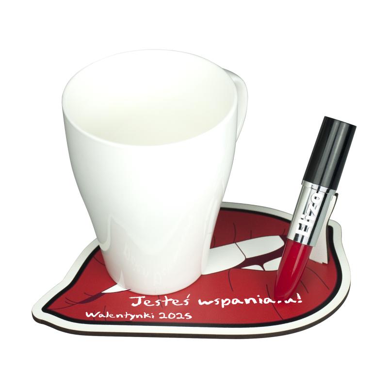 Ten produkt to kreatywny długopis w kształcie pomadki, który jest osadzony na podstawce w kształcie ust. Podstawka może służyć zarówno jako miejsce na długopis, jak i jako podkładka pod kubek, co czyni ten zestaw praktycznym i wielofunkcyjnym. Jest to idealny prezent z okazji Walentynki, obchodzonych 14 lutego, skierowany do kobiet ceniących zabawne i oryginalne akcesoria. Taki gadżet może być ciekawym dodatkiem na biurko, podkreślającym charakter i styl obdarowanej osoby, a także przydatnym elementem codziennego użytku. Doskonały sposób, aby połączyć funkcjonalność z estetyką w świętowaniu wyjątkowego dnia.