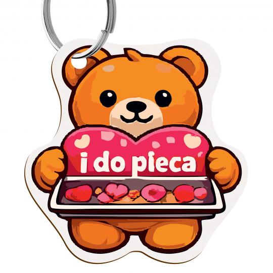 Brelok „I do pieca” to zabawny i wyrazisty dodatek, który od razu przyciąga uwagę. Motyw uroczego misia z sercem oraz charakterystyczne hasło nadają mu humorystyczny charakter i sprawiają, że świetnie sprawdzi się jako drobny prezent z przymrużeniem oka.