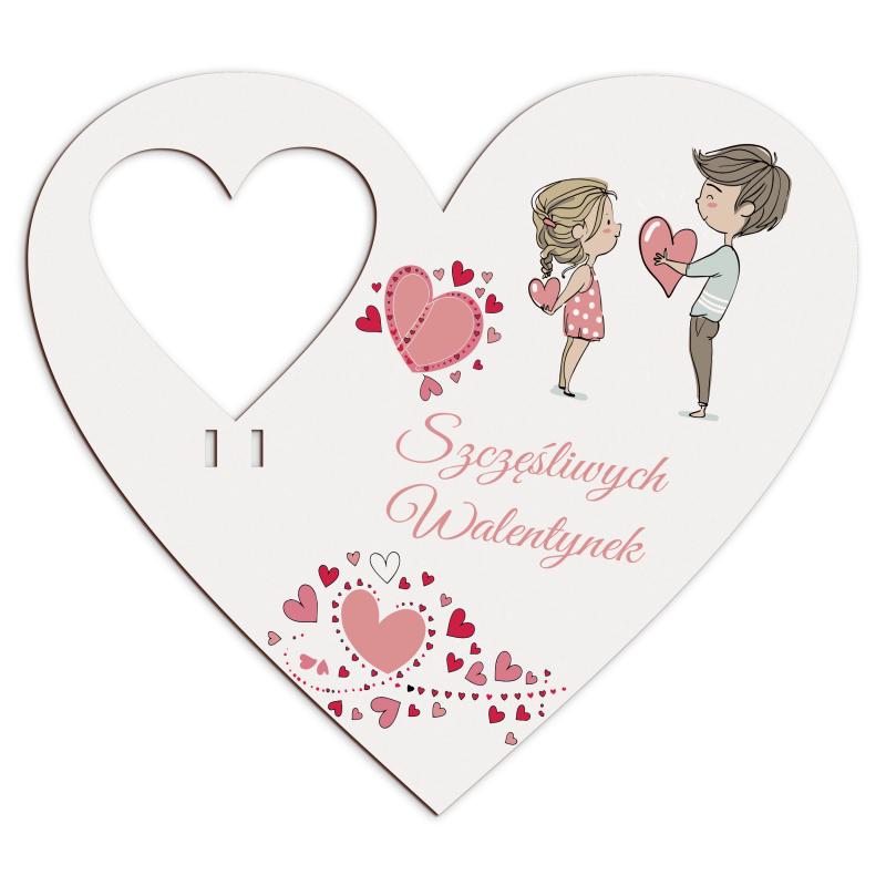 Drewniane serce walentynkowe na lizaka to urocza i symboliczna oprawa na słodki upominek. Dekoracja w kształcie serca z walentynkowym motywem świetnie sprawdzi się jako drobna niespodzianka na Walentynki, do przedszkola, szkoły lub jako dodatek do prezentu.