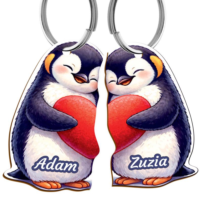 Breloki dla pary walentynki pingwiny z imionami prezent