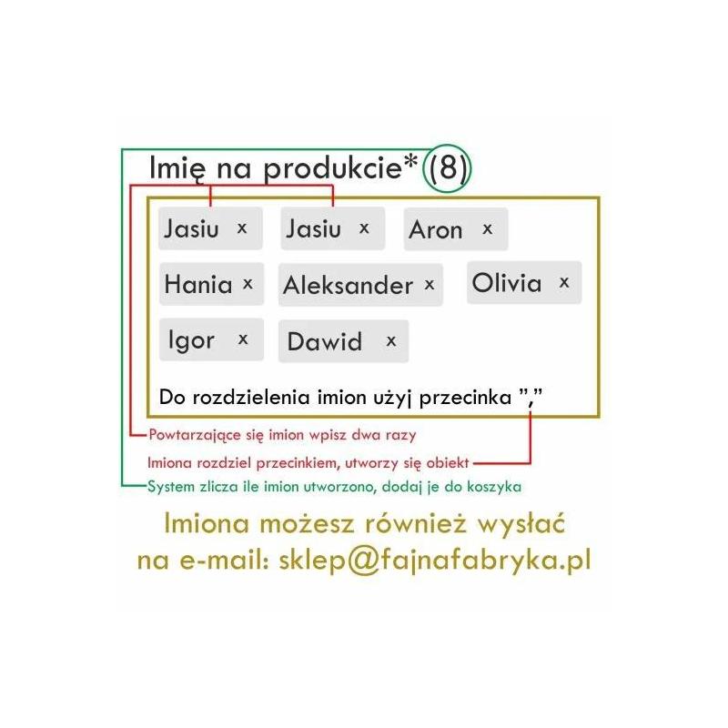 - Wysyłka przez e-mail - Imiona możesz również przesłać bezpośrednio na adres: sklep@fajnafabryka.pl.