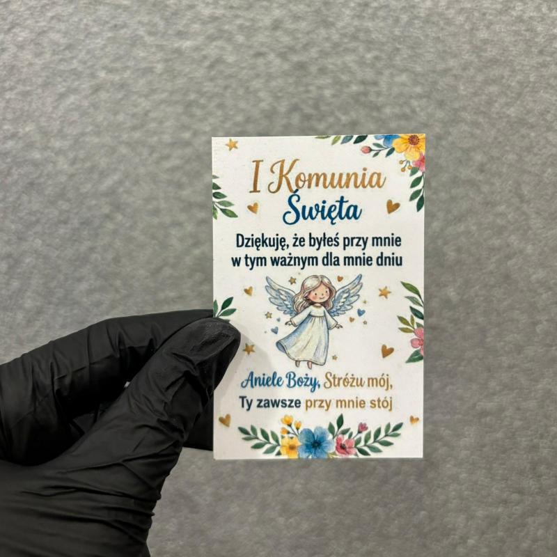Produkt wykonany jest z wysokiej jakości materiału, a trwały nadruk zapewnia estetyczny wygląd i wyraźne detale. Bilecik doskonale sprawdzi się jako uzupełnienie prezentu komunijnego.