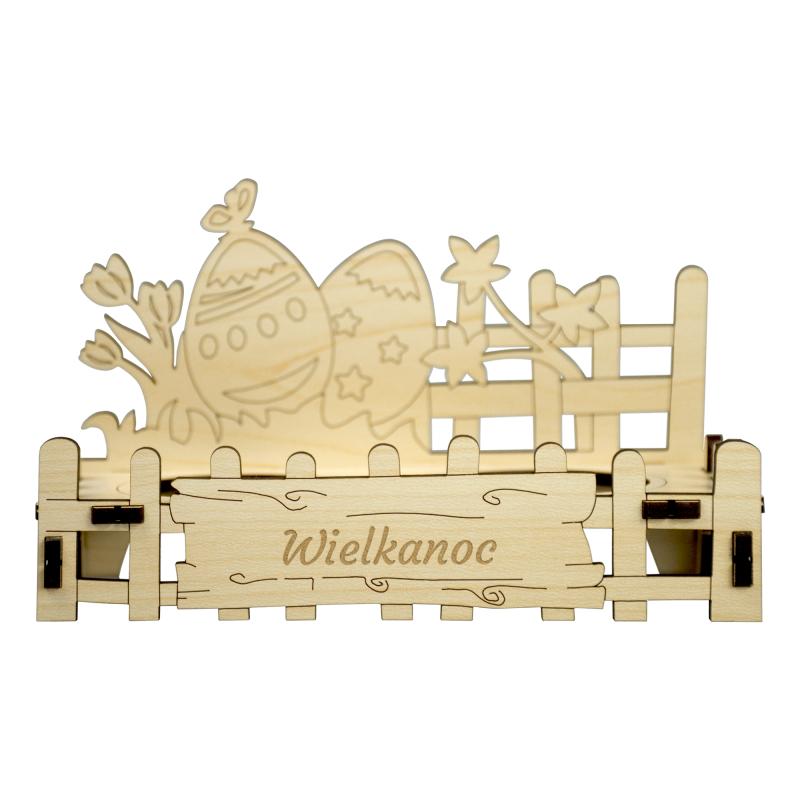 Szukasz pomysłu na oryginalną dekorację świątecznego stołu? Nasz drewniany stojak na jajka wielkanocne to praktyczna i efektowna ozdoba, która pięknie wyeksponuje pisanki, jajka Kinder Niespodzianka czy inne świąteczne smakołyki! Wyjątkowy design z motywami wielkanocnymi sprawia, że świetnie wpasuje się w klimat Wielkanocy.