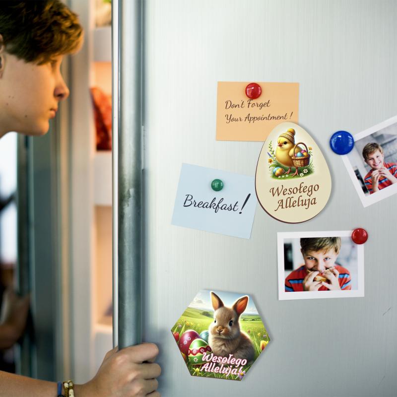 Spraw, by te Święta Wielkanocne były jeszcze bardziej wyjątkowe z naszym magnesem jajkiem z kurczaczkiem i napisem „Wesołego Alleluja!”!